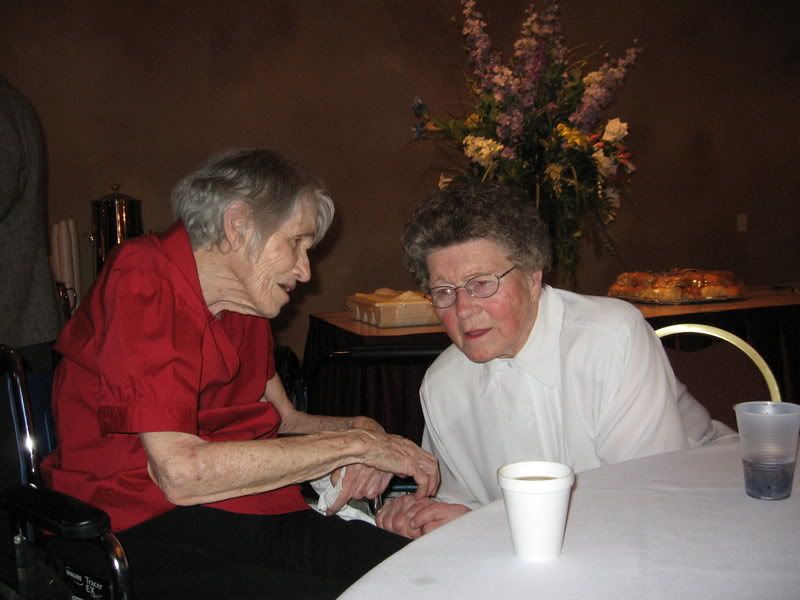 Another precious picture: Aunt Mae talking with Aunt Anita, Uncle Bill’s (and my late grandpa’s) youngest sister. Anita is also the last living member of the Stegmann brothers and sisters. I bet Mae and Anita are really feeling lonely today.